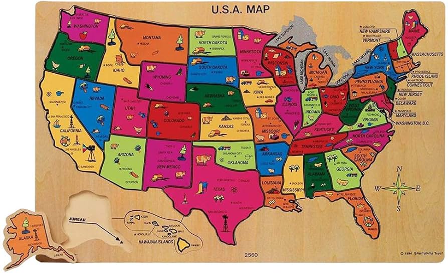 Small World Toys Ryan’s Room Wooden Puzzle U.S.A. Map : Amazon