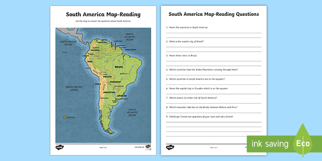 South America Map Reading Activity (teacher made) Twinkl