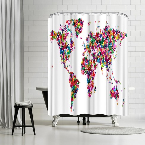 Americanflat 71″ X 74″ Shower Curtain, World Map Butterfly 2 By